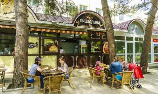 Еда для гостей готовится в столовой, специализирующейся на европейской кухне. Для отдыхающих предусмотрено диетическое питание, малышам предназначено детское меню. Кроме этого, санаторий приглашает в свой ресторан, летнее кафе и фитобар.